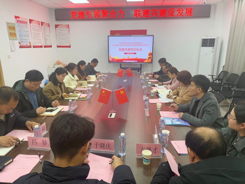 黄楠致欢迎词并介绍了官河小学的办学理念、育人特色和发展成果,并期待以共建为契机,推动双方在党建与育人方面实现资源共享、协同发展。史娟荣介绍了学校及党支部的基本情况、党建工作特色和资源优势。双方围绕“党建引领、资源共享、协同育人”等主题展开深入交流。史娟荣与黄楠代表双方党支部共同签署了党建共建协议。