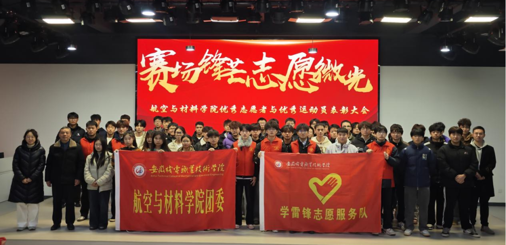 为落实立德树人根本任务,表彰先进典型,凝聚奋进力量,2025年12月17日中午,航空与材料学院在学校大学生活动中心举办“赛场锋芒,志愿微光”表彰大会。学院党总支副书记张朝兵、分团委书记陈庄瑾、学生党支部书记陈康及学生代表共同参加。