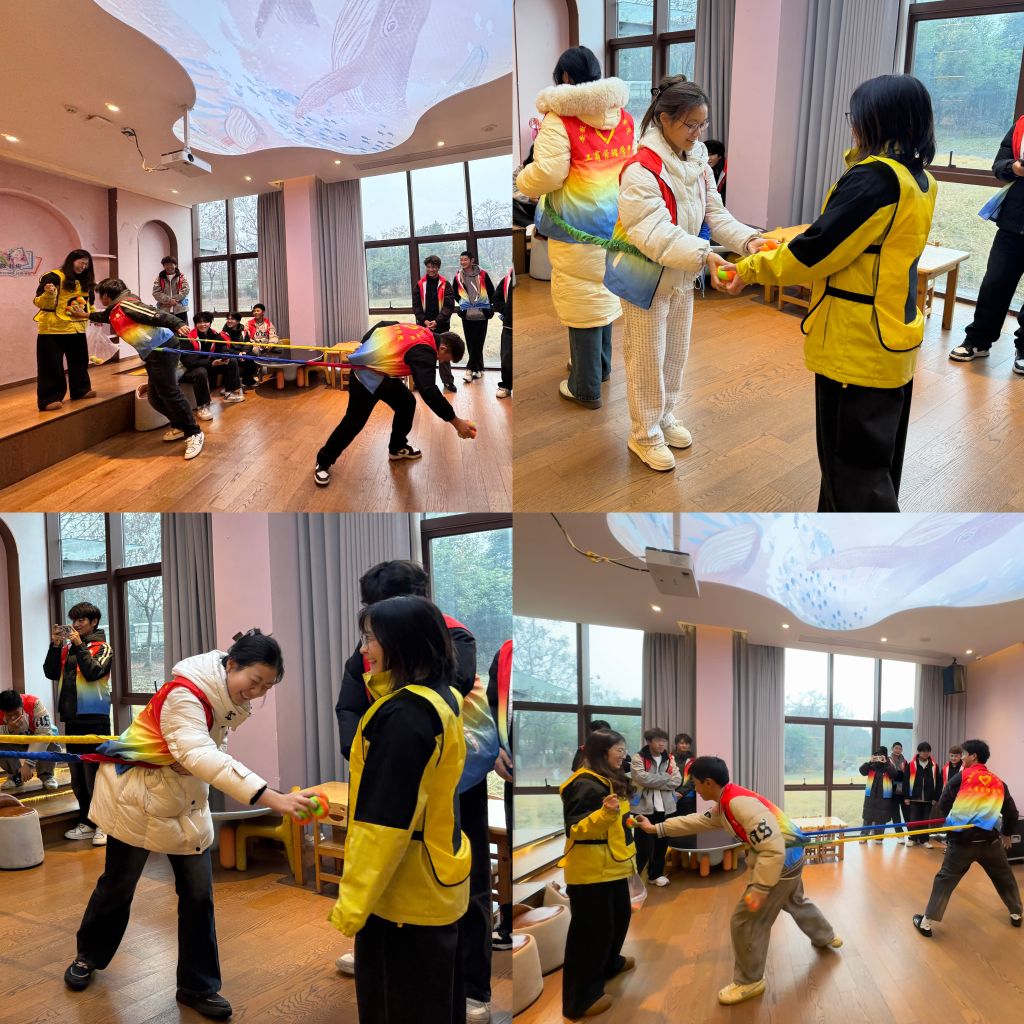 整理工作结束后,学院联合江湾书院针对期末阶段学生普遍面临的学业压力与紧张情绪,特别设计了轻松活泼的压力释放环节。通过“情绪漂流瓶”“备考能量圈”等互动游戏,同学们坦诚分享期末焦虑,相互提供复习建议。现场笑声阵阵,紧绷的神经在集体温暖中逐渐放松。