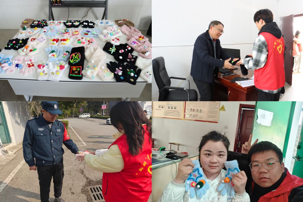 活动尾声,志愿者们将亲手制作的围巾、手套赠送给校区老师以及坚守一线的保安、保洁工作人员,送上冬日里的专属温暖与诚挚祝福。一份份手作礼,不仅为大家抵御了冬日严寒,更搭建起校园互助的桥梁,让善意在校园里双向传递。