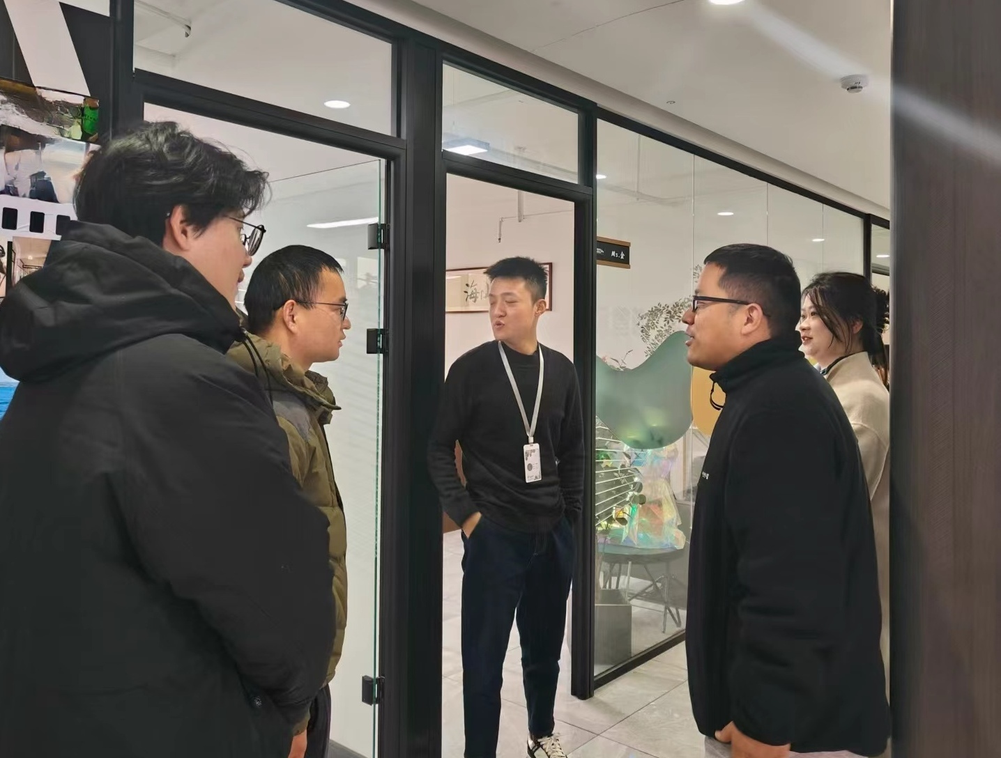在许可翔的引导下,王冬冬一行参观了公司的员工办公区域,实地考察了解了企业的运营环境、工作氛围与文化理念。随后,双方在会谈室进行了座谈。