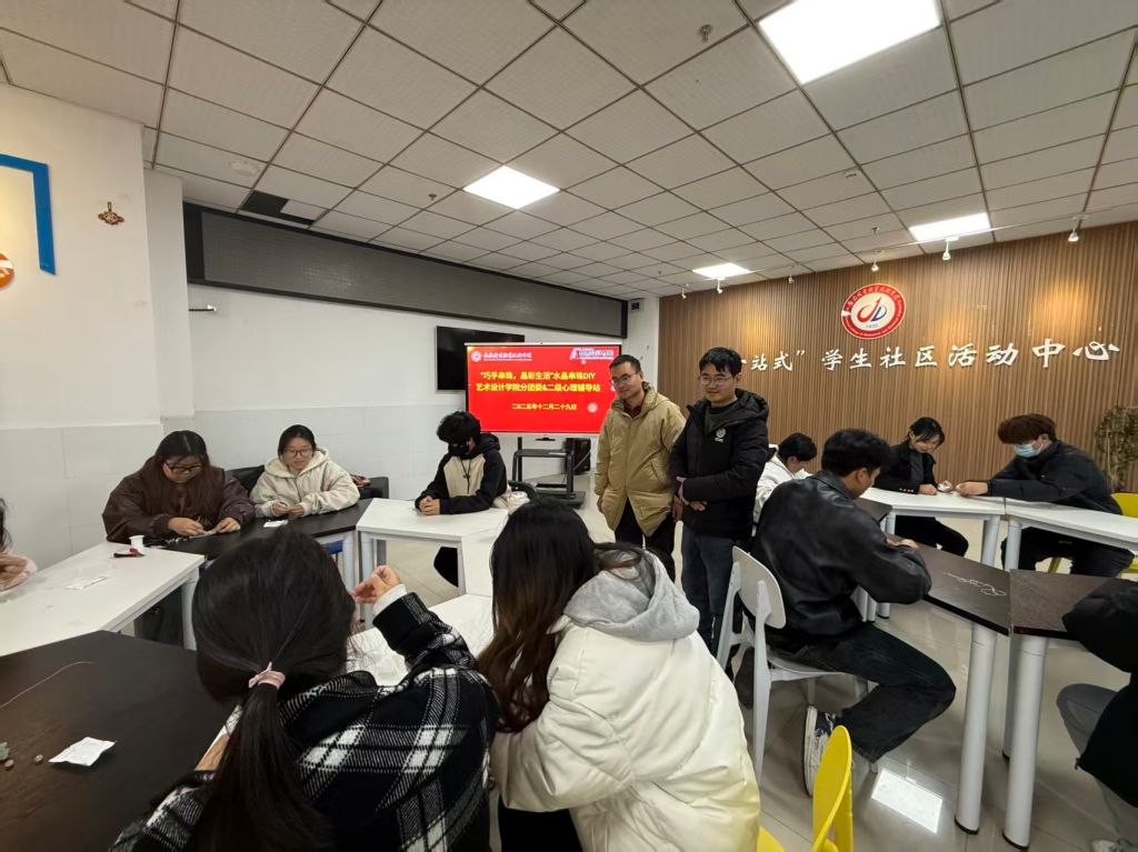 为深入推动心理健康教育进学生社区,以美润心推进立德树人机制综合改革试点院系建设,营造积极向上、和谐温馨氛围。12月29日,艺术设计学院依托“创美社区”一站式学生社区平台开展了“巧手串珠,晶彩生活”水晶串珠DIY活动,院党总支副书记王冬冬、分团委书记丁鹏及30余名学生参与。