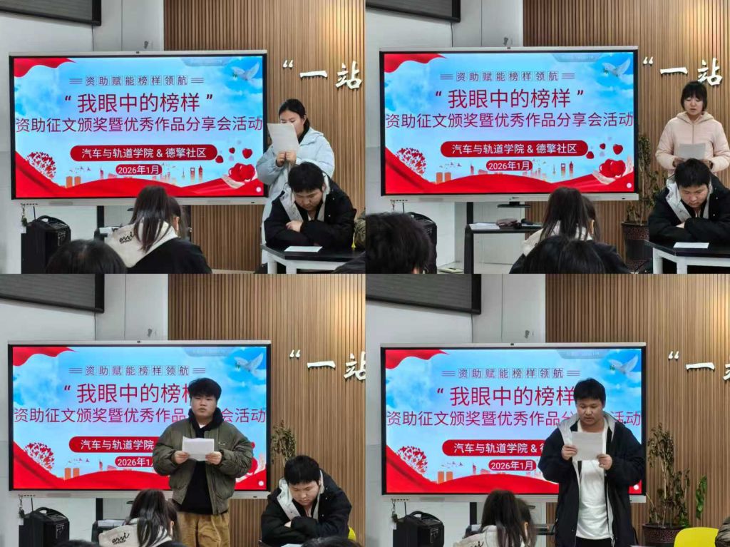 为深入推进资助育人工作,发挥榜样示范引领作用,厚植学生诚信感恩品质,在寒冬中传递校园温情,1月6日中午,德擎社区开展2025年暖冬活动之“我眼中的榜样”资助征文颁奖暨优秀作品分享会。汽车与轨道学院资助专项辅导员马娟及30余名学生代表参与此次活动。