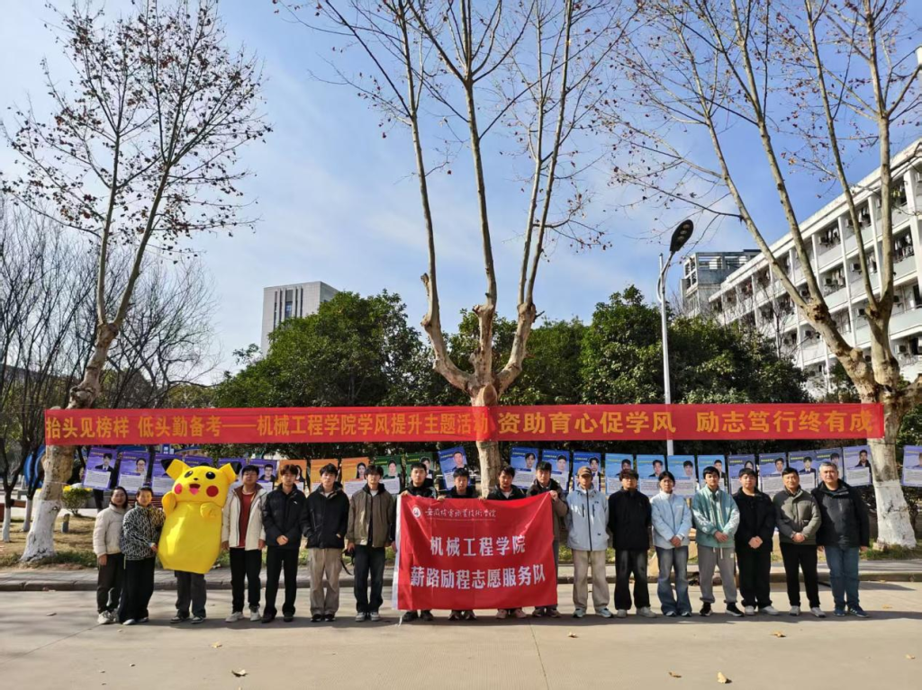 为持续发挥学生榜样引领示范作用,提升学院学风氛围,助力同学们高效备战期末,2026年1月9日,机械工程学院在5号宿舍楼前举办了“资助育心勤备考,励志笃行终有成”学风提升主题活动。学院党总支书记徐亮、党总支副书记杨磊及辅导员邹传娟、韩俊丽出席活动。