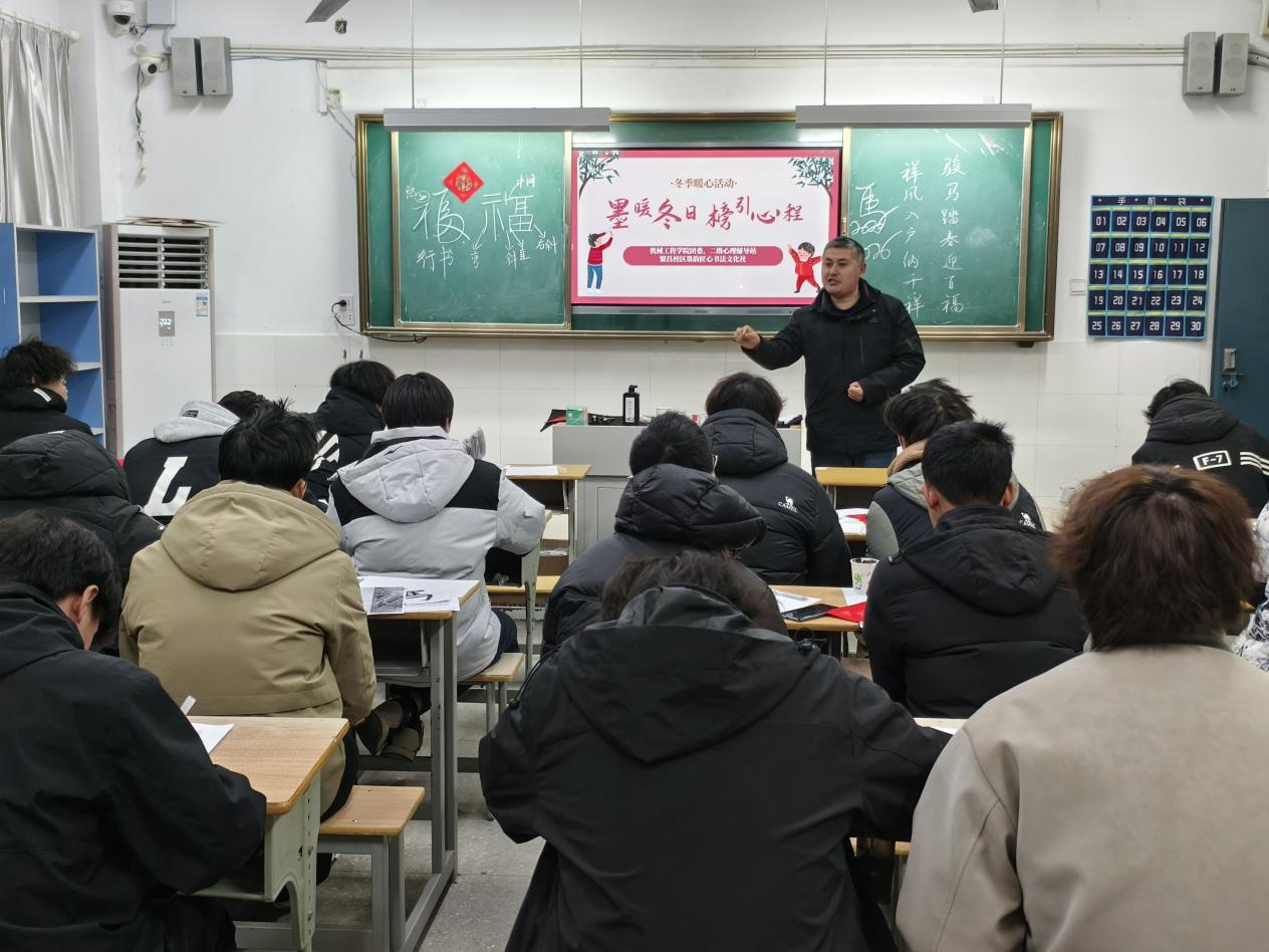 为进一步落实学校关于加强大学生心理健康教育工作的有关精神,夯实五育并举促进心理育人的成效,在新年到来之际,机械工程学院于1月8日晚在繁昌校区举办“墨暖冬日,榜引心程” 冬季暖心活动,学院党总支副书记杨磊、辅导员于洪翔、肖红雨、繁昌校区数控技术专业40余名学生代表参与活动。