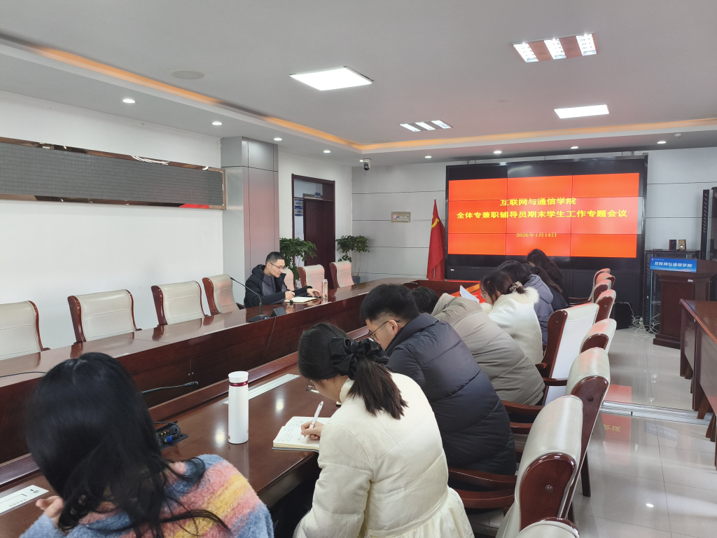 为了总结2025年秋季学期学生工作,安排期末、寒假及新学期重点任务。1月14日下午,互联网与通信学院在明德楼306会议室召开期末学生管理工作专题会议。学院党总支副书记王东华、全体专兼职辅导员参加了此次会议,会议由王东华主持。