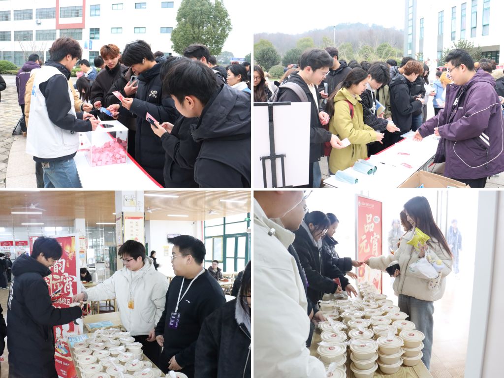 活动现场暖意融融、氛围感拉满,浓浓的节日气息扑面而来。工作人员提前精心布置灯谜现场,数百条灯谜悬挂有序,谜面涵盖传统文化、生活常识、生肖趣味等多个类别,通俗易懂又暗藏巧思,吸引了同学们踊跃参与、驻足思索。活动中,同学们兴致高昂地走进灯谜现场,相互探讨、分享思路,思维的火花在交流中不断碰撞。每当有人猜出谜底,都会迫不及待地前往兑换区领取精美礼品,现场欢声笑语,热闹非凡。猜完灯谜后,同学们还可以兑换热气腾腾的元宵汤圆,一碗碗软糯香甜的汤圆,不仅驱散了春日的微凉,更传递着校园的关怀与团圆的美好寓意,让远离家乡的学子们感受到家一般的温暖。