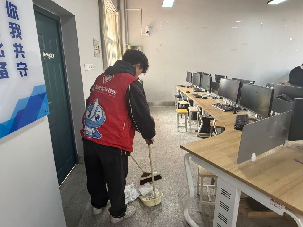 清洁实训室——以劳动践行初心,用双手扮靓校园。启动仪式结束后,学院组织青年志愿者立即投入到实训室志愿服务清洁活动中。志愿者们身着统一红色马甲,对学院实训室展开全面清洁维护。活动现场,志愿者们热情高涨、分工协作。经过近两个小时的辛勤劳动,各实训室窗明几净、设备整齐、环境焕然一新。参与活动的志愿者纷纷表示,通过自己的双手为同学们创造整洁舒适的学习环境,既是对雷锋精神的生动实践,也是作为艺术学子应有的责任与担当。
