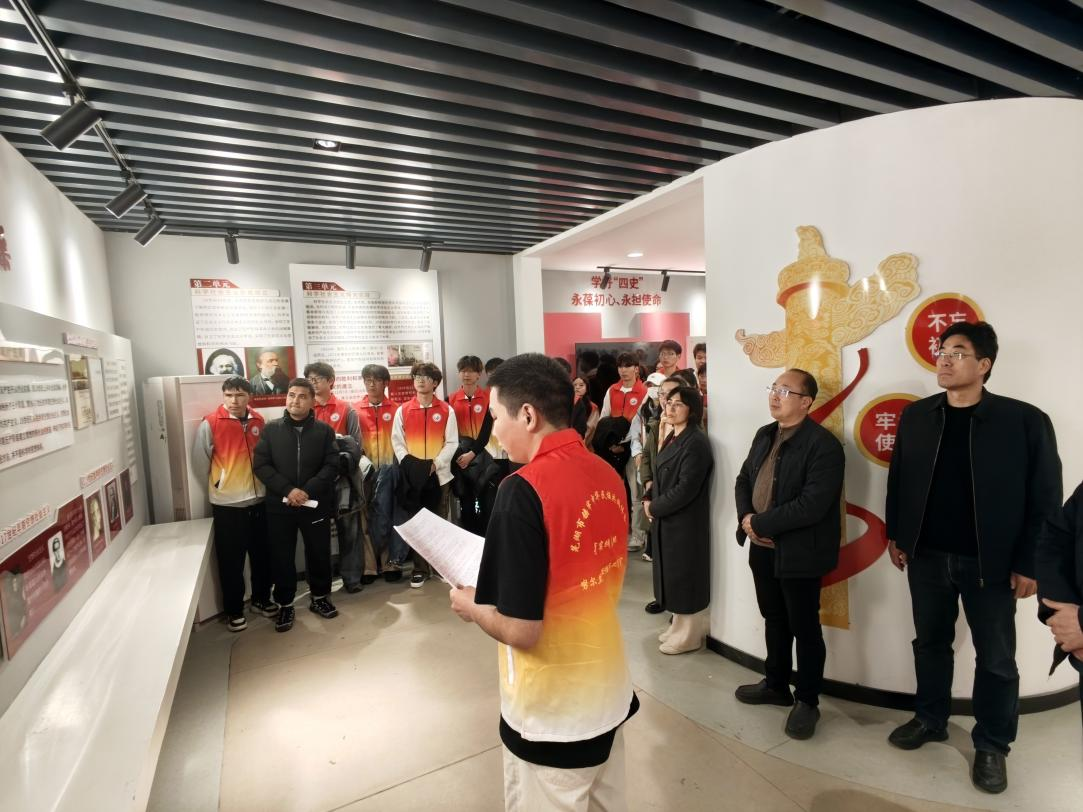 为深化 “四史” 学习教育,铸牢中华民族共同体意识,厚植青年学生家国情怀,近日,“石榴籽” 民族文化交流社团、卫国青英协会40余名学生,在学工与招就党支部全体老师带领下,共同走进马克思主义学院四史馆开展主题参观学习。