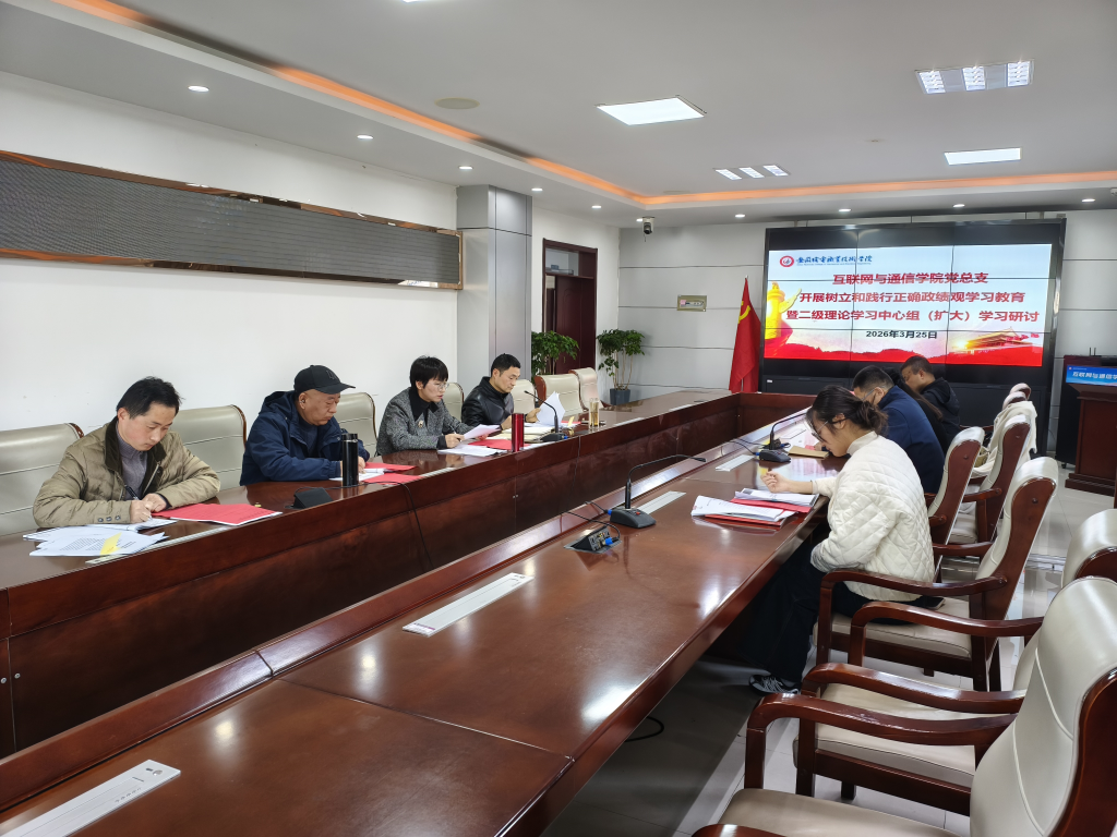 为深入学习贯彻习近平总书记关于树立和践行正确政绩观的重要论述。3月25日下午,互联网与通信学院党总支在明德楼306会议室,召开树立和践行正确政绩观学习教育暨二级理论学习中心组(扩大)学习研讨。党总支书记王蓉主持会议,院长邓春红列席会议,党总支班子成员及各党支部书记参加了集中学习。