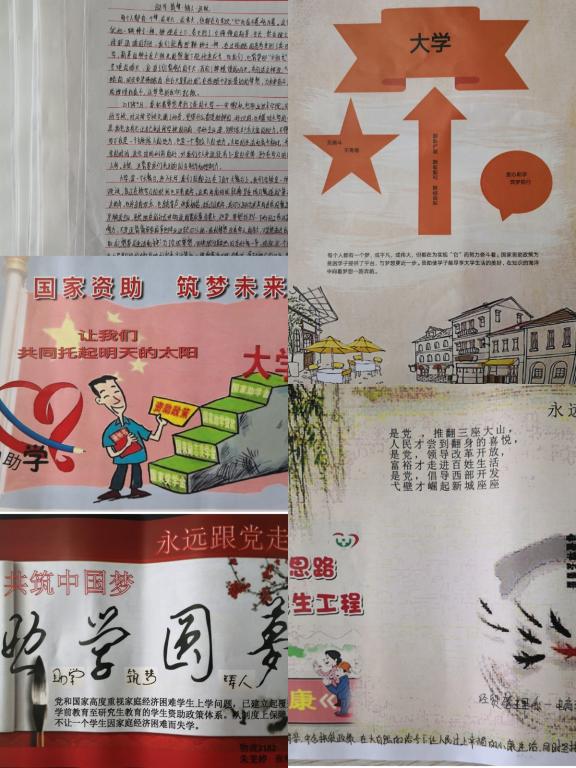 经贸管理系受资助学生踊跃投稿,通过文字书写自己的青春奋斗故事,以此传达对学校、国家的感恩之心。通过视频拍摄受助学生在生活、工作或者学习中的瞬间,以此展现他们的青春激昂、奋斗不息、追梦不止。通过音频录制宣传国家资助政策及成效,以此表达他们的青春梦;通过画笔宣传国家资助政策,以此赞美党和政府情系民生国家资助政策。在评审过程中,评委们认为同学们通过征文和视频记录了受资助学生在生活、工作或者学习中的瞬间,展现了他们的青春、奋斗与梦想。