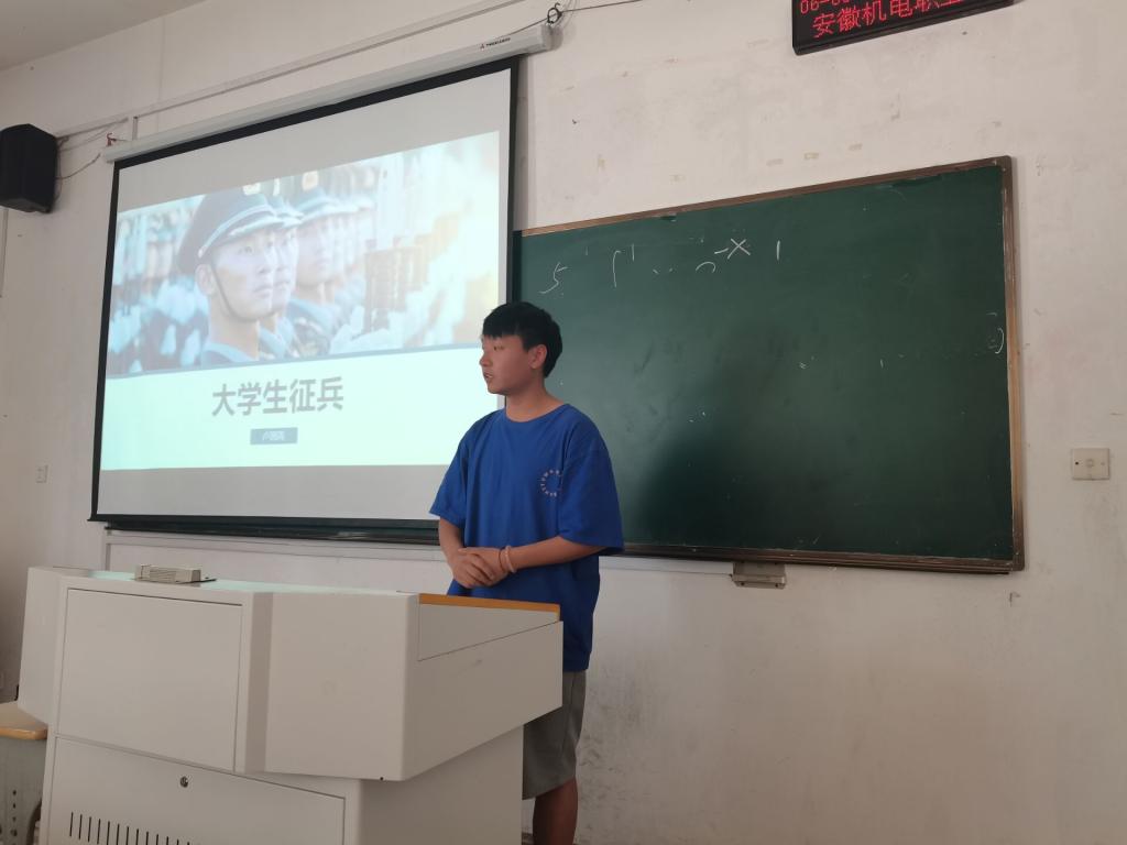 随后4名退役复学的同学分别围绕自己的兵种火箭军、空降兵、空军、武警与同学们分享自己的军营生活以及成长收获,他们表示参军报国是对国家的忠诚,是对青春的热爱,是一次无悔的选择,号召同学们肩负起时代赋予的重任,为保卫祖国安全、捍卫祖国尊严贡献自己的青春和力量。