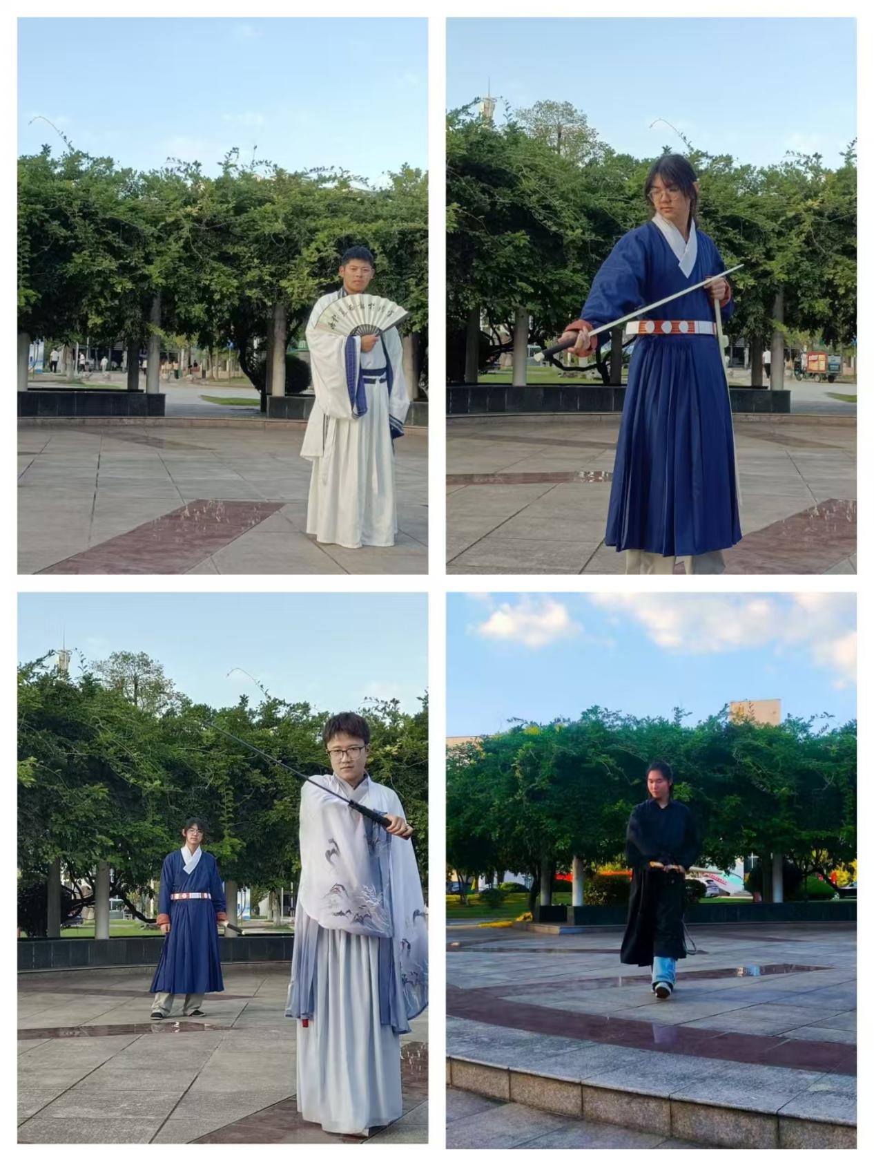 古典舞《瞻泊鸳鸯戏》拉开了本次活动的帷幕,舞者们身着汉服,探袖抱月,舞身似蛟如云,美轮美奂。接着,汉服走秀《清平汉裳》伴着古典音乐开始,同学们身穿汉服,或手握古剑,或手执团扇,尽显我华夏男子之刚健、女子之柔美。最后,汉服社成员朗诵了中华国学经典《诗经》,“蒹葭苍苍,白露为霜。所谓伊人,在水一方……”用汉文化和经典诵读结合的方式,营造了校园阅读经典、传承经典的氛围。活动中穿插的游戏互动和体验舞剑环节,让大家了解到了更多传统文化知识,激发了大家对传统文化的兴趣。