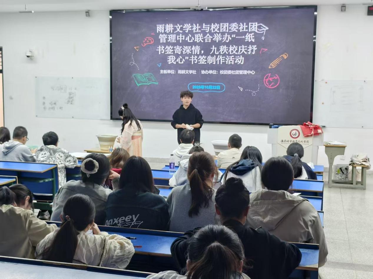 笔墨凝情,书签载意。11月5日,雨耕文学社联合校团委社团管理中心推出“一纸书签承校韵,九秩风华伴书香”DIY书签创作活动,以方寸之美传递校史温度,让书香与校韵浸润校园。