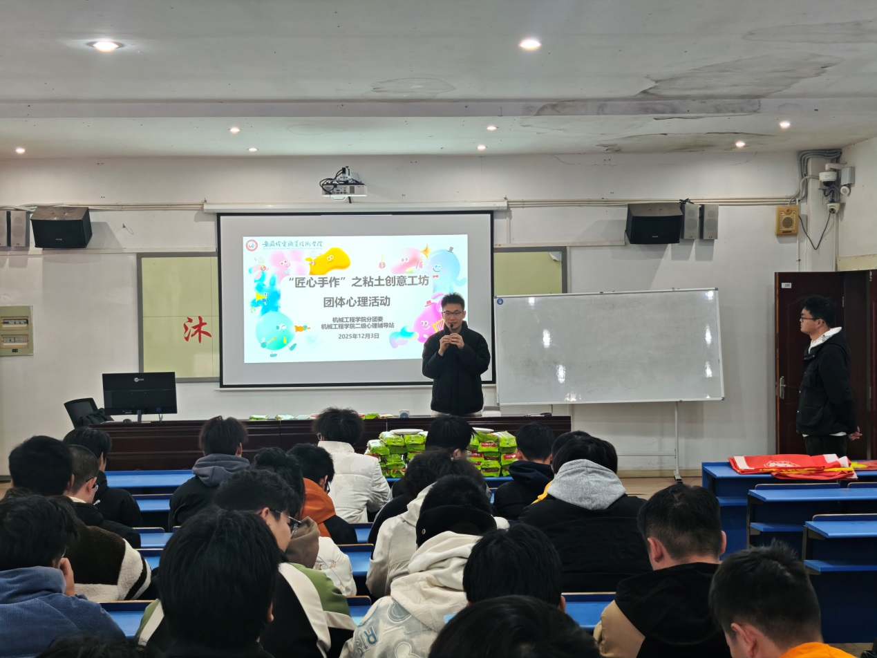 为进一步夯实五育并举促进学生心理健康的工作成效,提升在校学生心理健康素养,营造团结互助的友好氛围,机械工程学院于12月3日赴繁昌校区开展“匠心手作”创意工坊特色心理活动。本次活动由机械工程学院主办,学院二级心理辅导站承办,院分团委负责人钱锟、心理专项辅导员肖红雨、繁昌校区辅导员于洪翔参与。繁昌校区数控专业40余名新生参加了本次活动。