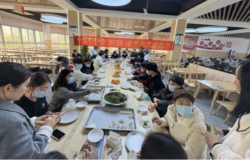 活动前期,食堂工作人员精心准备了新鲜的饺子皮、馅料以及各类调味品,活动现场布置得整洁温馨。同学们分工协作,和面、擀皮、包馅、摆盘,现场一派祥和。同学们分享了家乡特色的饮食文化,互学了不同样式的包饺子技巧,每一张笑脸都洋溢着青春的活力。参与活动的同学们深刻体会到了“民族团结一家亲”的温馨氛围。