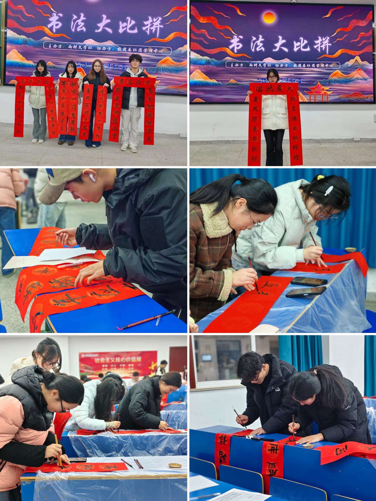 为传承中华优秀传统文化,营造浓郁书香校园氛围,12月24日下午,雨耕文学社联合校团委社团管理中心举办“笔墨传情,书香校园”书法竞赛。活动吸引100名书法爱好者报名参与,社团指导老师吕婧现场指导。