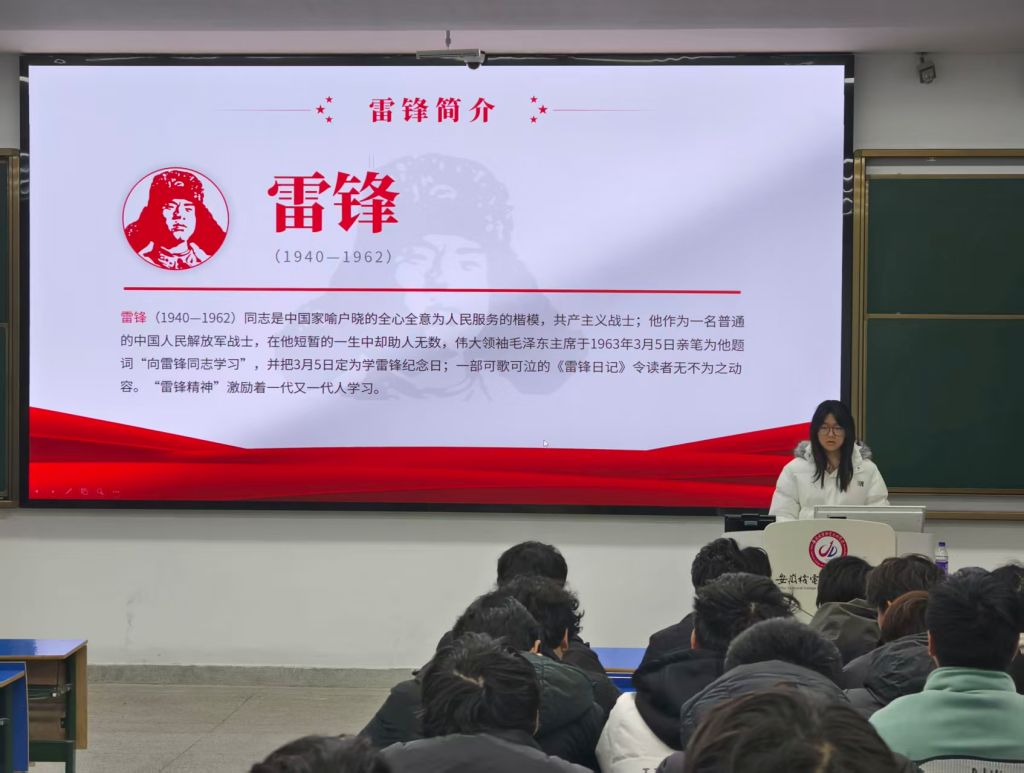 为深入弘扬雷锋精神,强化在校大学生感恩社会、服务他人的责任意识,引导青年学子以实际行动投身志愿服务。2026年3月6日中午,机械工程学院面向大一学生开展“学雷锋・文明实践我行动”主题教育活动,本次活动由学院大一年级辅导员肖红雨、资助专项辅导员韩俊丽共同组织,院学生会主席团成员任依凡担任主题宣讲人。