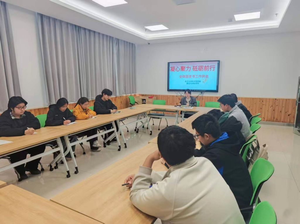 为进一步夯实基层团组织建设,规范工作流程,提升团干部履职能力,3月30日,航空与材料学院分团委在图书馆会议室召开全体团支书工作例会,会议围绕思想引领、团务部署与志愿服务等内容展开交流,学院分团委书记陈庄瑾主持会议,各团支部书记参加会议。