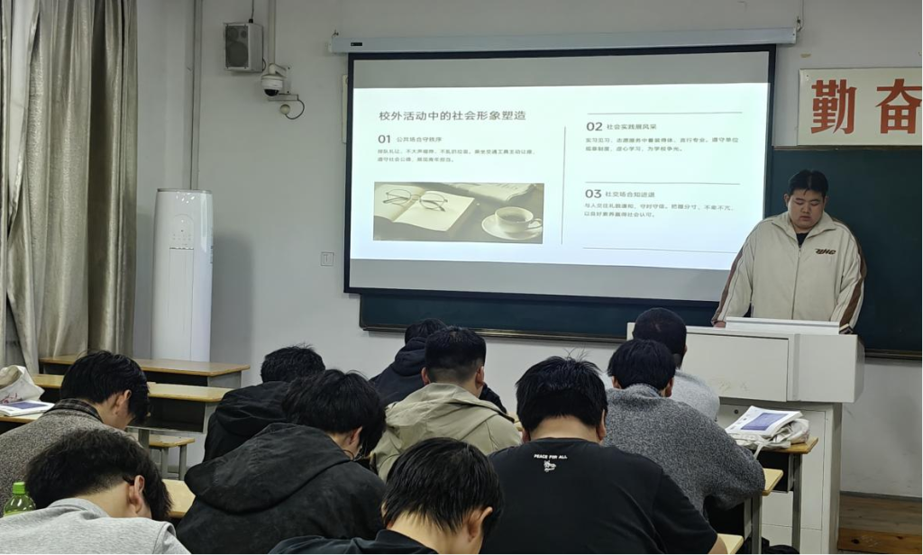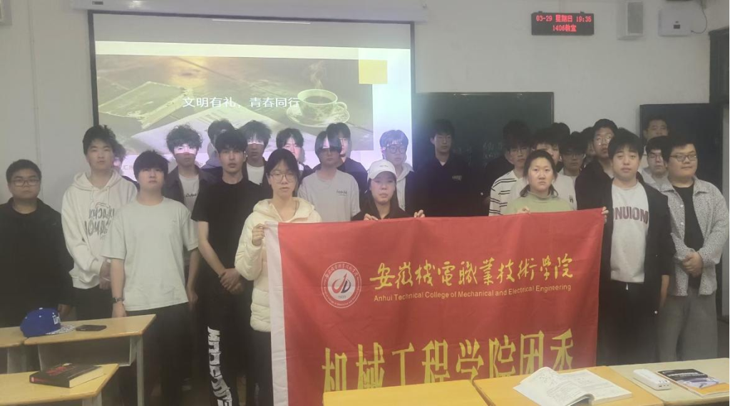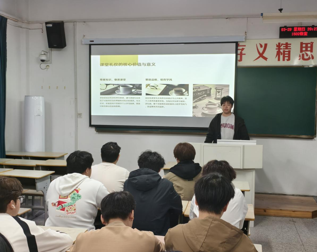 为积极响应学校文明礼仪提升月活动号召,提升学生文明素养,营造崇德尚礼、文明和谐的校园氛围,机械工程学院分团委开展 “文明有礼,青春同行”文明礼仪宣讲活动,走进学生晚自习课堂,将文明新风尚传递到每一位青年学子身边。