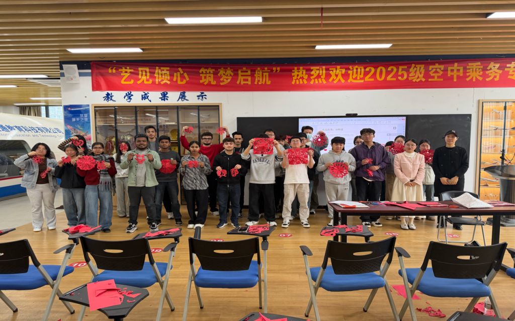 2026年4月14日,由我校桥语社国际留学生社团主办的“剪艺传情,纸上生花”非遗剪纸主题活动在明德楼一楼空乘实训室圆满落幕。活动吸引了众多中外学生踊跃参与,现场气氛热烈,互动频繁。